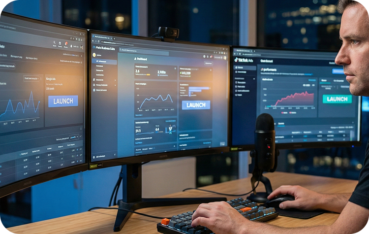 Campaign activation across search, social, display, and video platforms simultaneously.